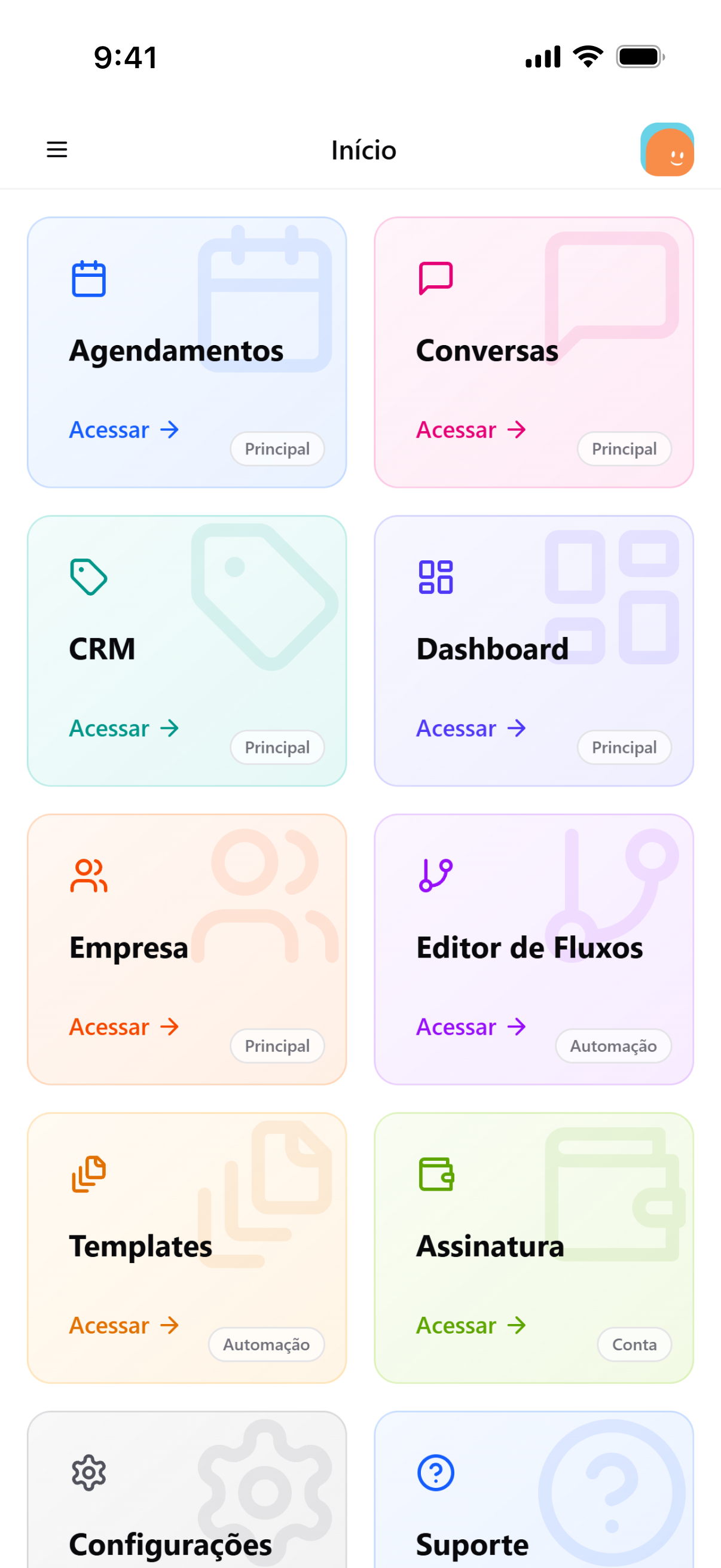 Centralize atendimento, automação e CRM em uma única plataforma. Prompt por texto, follow-up automático, agendamento de mensagens e relatórios para escalar seu negócio.